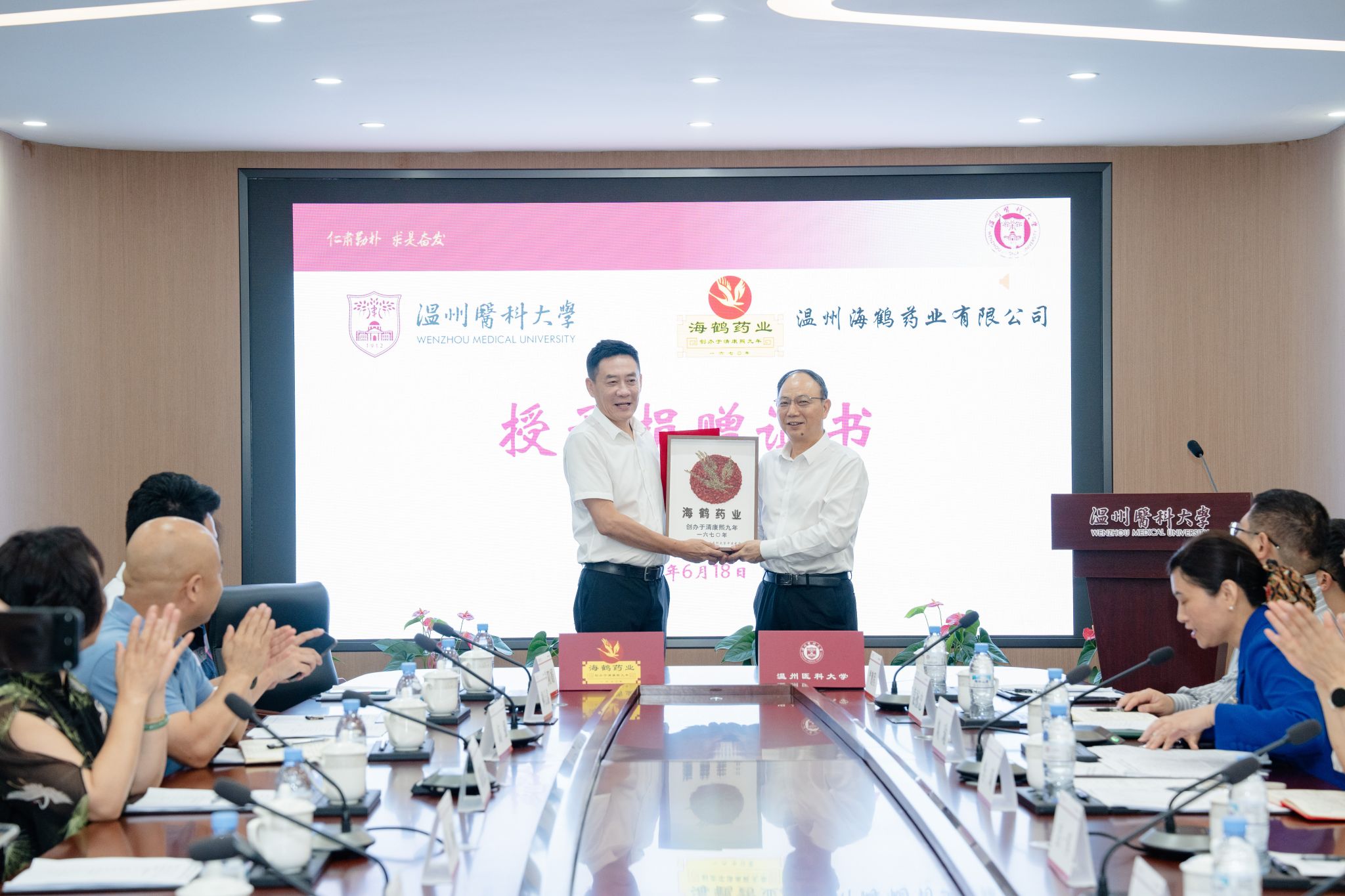 温州海鹤药业有限公司董事长高杨表示,作为一家企业,不仅关注经济效益,把企业做大做强,更需要承担起社会责任,在奉献爱心方面做出表率。此次捐赠是企业向社会传递爱心,坚持创新引领发展,推动校企合作,不断开发研发新产品所迈出的全新一步,希望双方以此为起点,进一步走向多层次、多方面、各领域的合作关系,让校企合作发展走上新台阶。