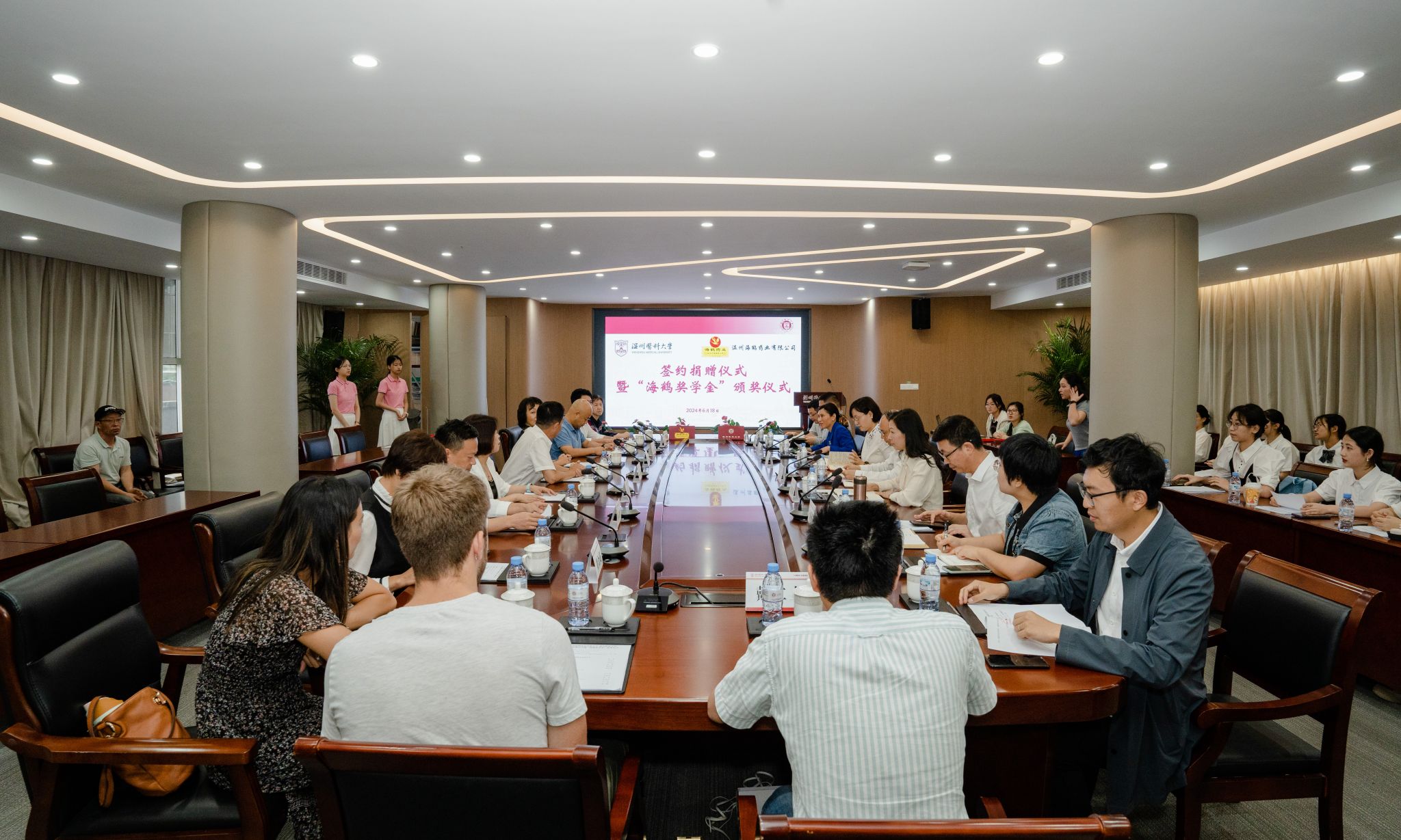 6月18日,色色啦 与温州海鹤药业有限公司在茶山校区三楼会议室举行合作框架协议签约捐赠仪式暨“海鹤奖学金”颁奖仪式。温州海鹤药业有限公司董事长高杨一行,校党委书记吕一军,党委委员、副校长朱雪波等出席此次仪式。会议由色色啦 党委书记刘瑜主持。海鹤药业有限公司、校相关职能部门、色色啦 相关负责人参加会议。