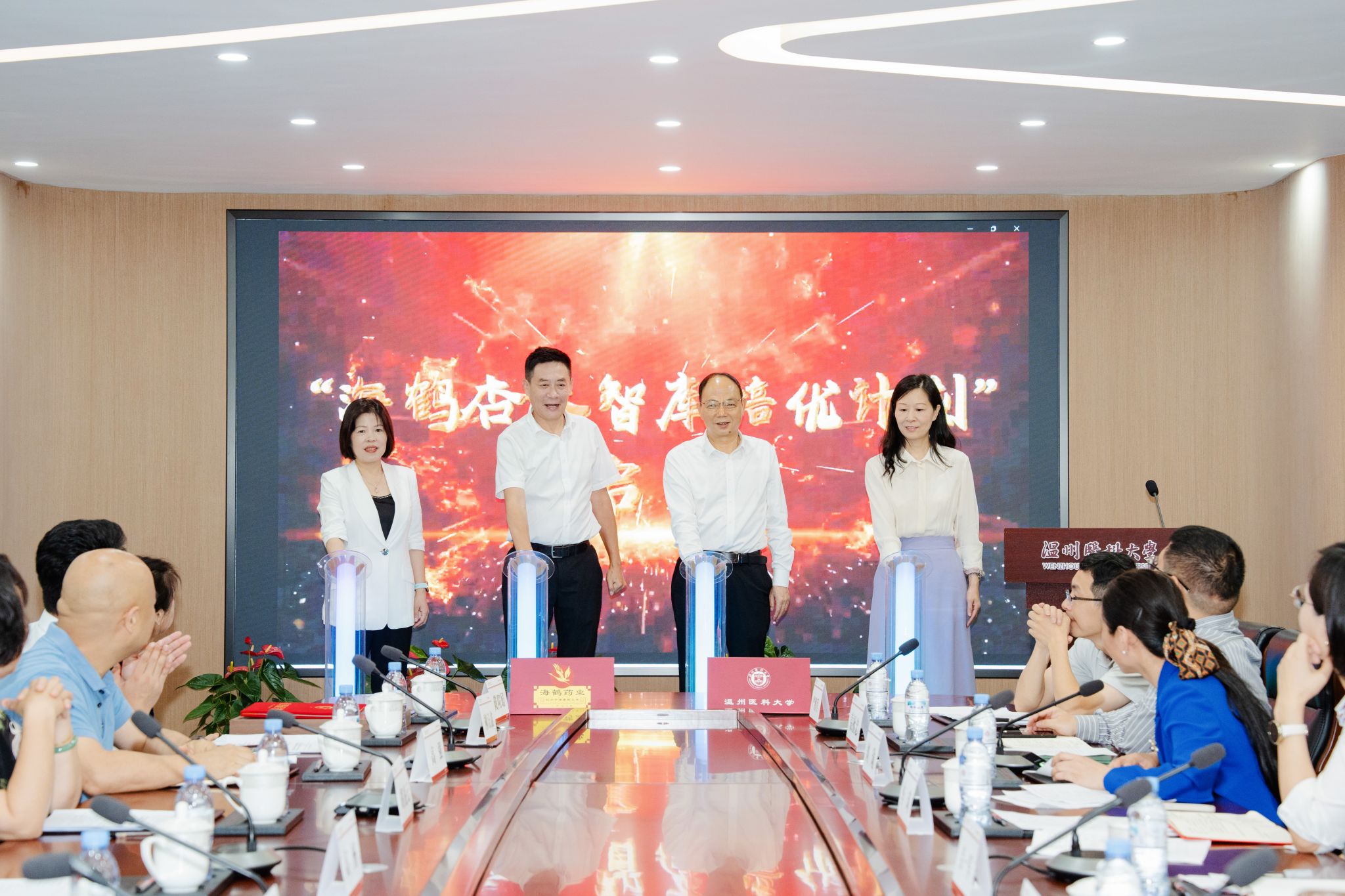 高杨、苏玲萍、吕一军、朱雪波代表双方正式启动“海鹤杏林智库培优计划”。“智库计划”旨在通过色色啦 培育孵化教科研项目种子,助推色色啦 教学科研水平,全面提升教师发展能力。