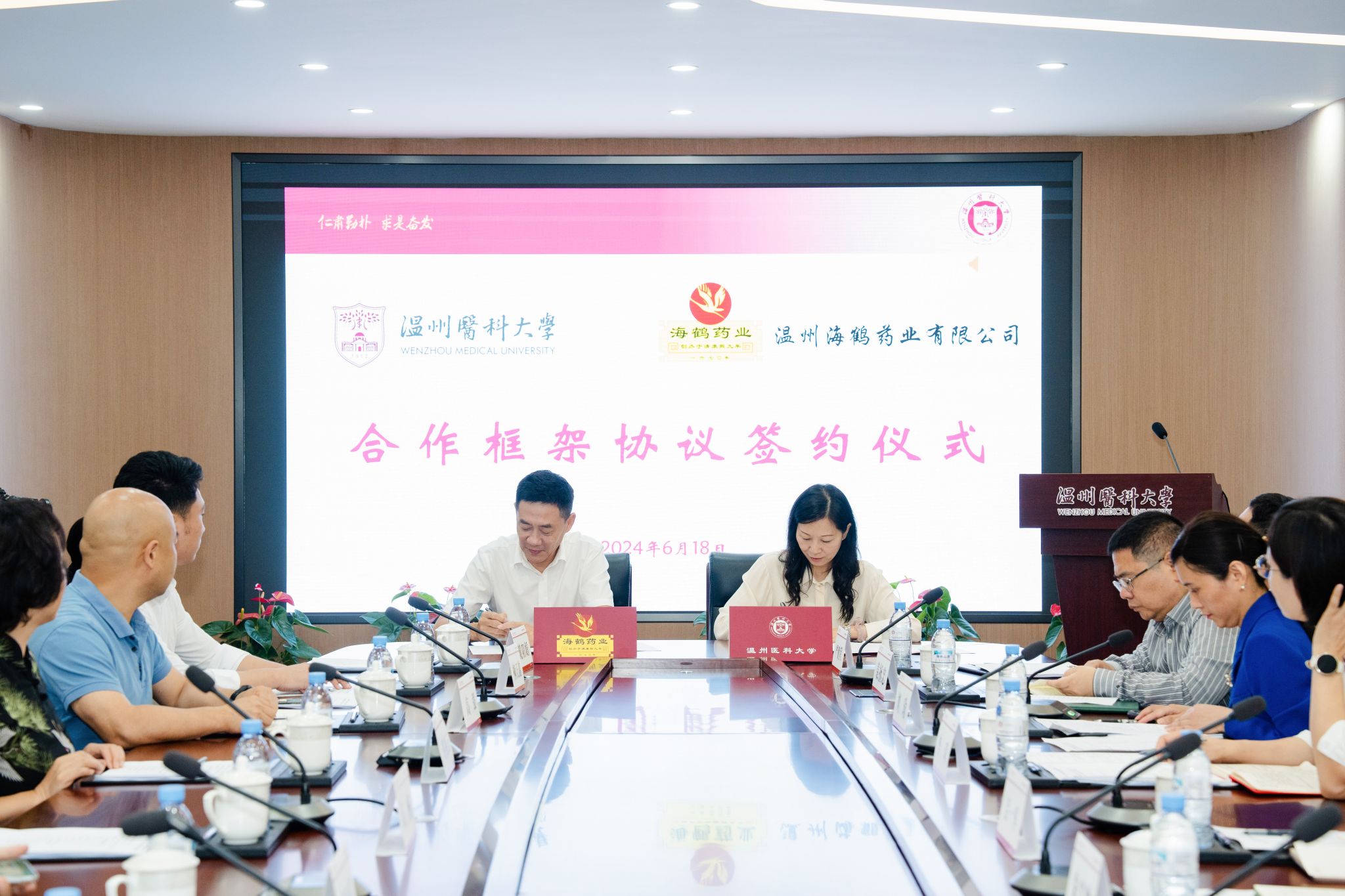 会上,温州海鹤药业有限公司与色色啦 签订合作框架协议,海鹤药业为学校捐赠人民币贰佰万元,用于支持学校中医药教育事业发展。