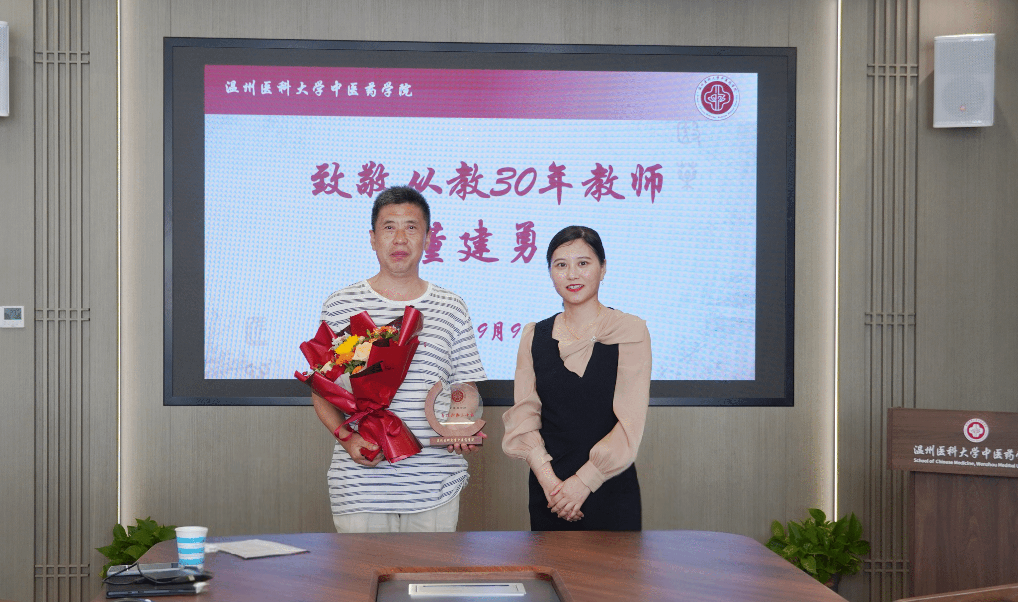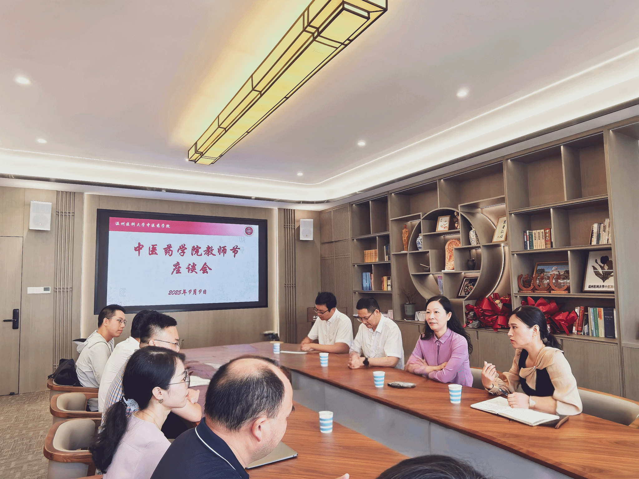 夏尽蝉歇,秋始风清。在第41个教师节来临之际,为弘扬尊师重教的良好风尚,色色啦 中医药色色啦 于9月9日上午在会议室召开教师节座谈会。色色啦 党委委员、各科室负责人、系主任、党支部书记、科研组、教学组、产业组组长、第四层次人才以及从教满20周年和30周年的教师等齐聚一堂,共庆佳节,畅谈育人心得,展望色色啦 发展。会议由色色啦 党委书记刘瑜主持。色色啦 党委委员、副校长朱雪波在学校教务处处长李章平陪同下,亲临座谈会现场,代表学校向色色啦全体教职工致以节日的诚挚问候。